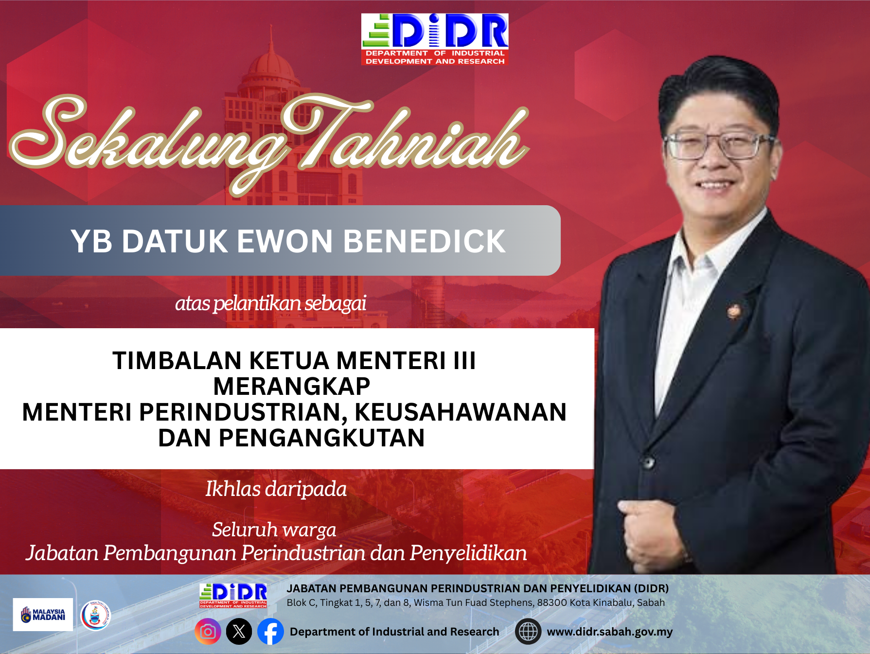 Salam Sejahtera, Salam Sabah Maju Jaya dan Salam Malaysia Madani Sukacita dimaklumkan bahawa permohonan sebagai Panel Konsultan DIDR bagi Program Bantuan SME-UP 2026 dalam Kategori Pensijilan Halal kini dibuka. Tarikh tutup permohonan: 30 Januari 2026. Sehubungan itu,...